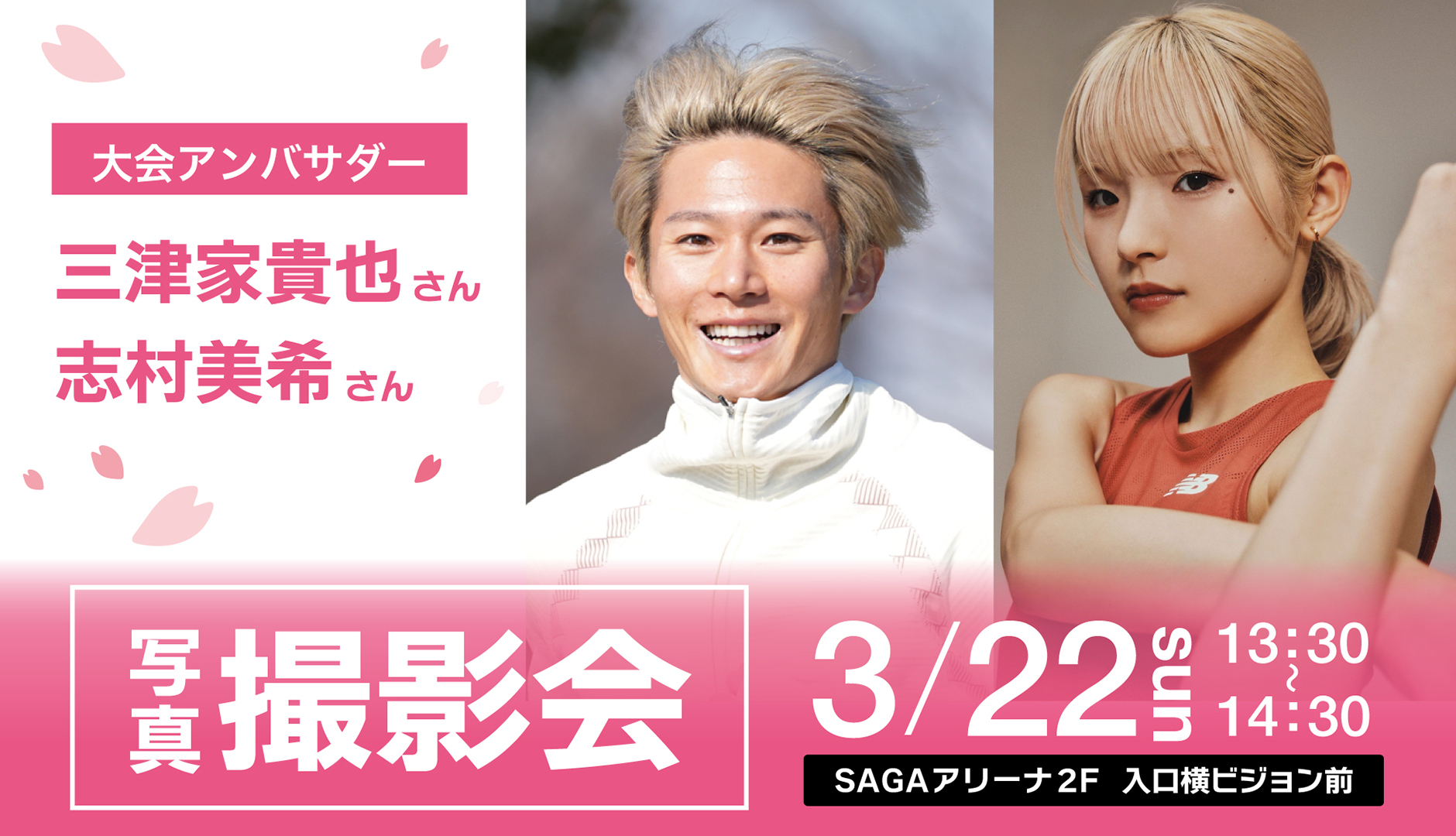 大会アンバサダーの「三津家貴也さん」「志村美希さん」との写真撮影会を行います。