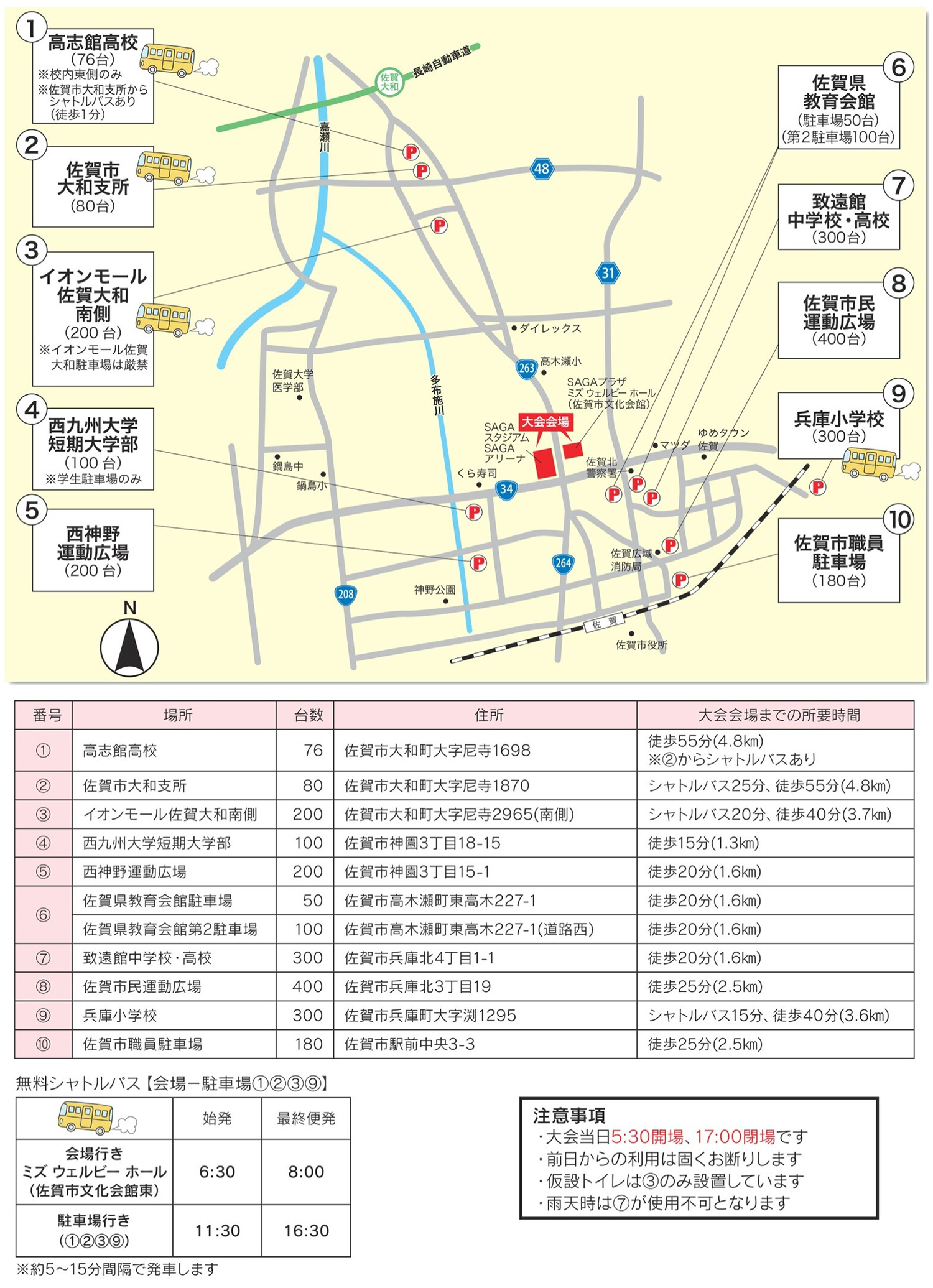 なお、臨時駐車場・シャトルバスの事前予約はできません。(大会当日先着順)